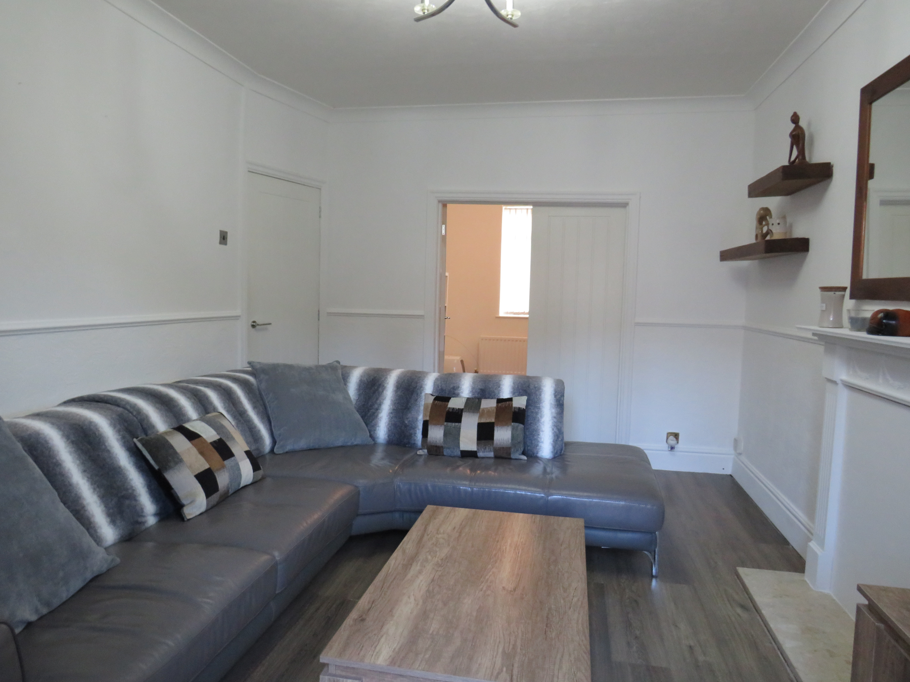Internally the property comprises of entrance vestibule into an entrance hallway, a spacious lounge to the rear, separate dining room and a modern fitted kitchen with free standing oven. To the first floor is a large modern three piece modern bathroom suite with a shower above the bath and two good sized double bedrooms.